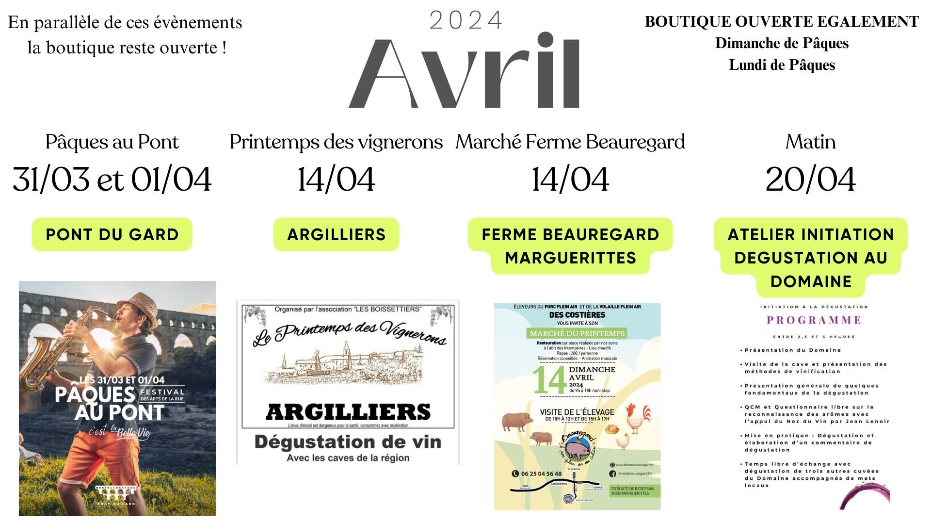 Le Dimanche 14/04: Printemps de vignerons à Argilliers mais aussi marché du printemps à la ferme Beauregard à Marguerittes.